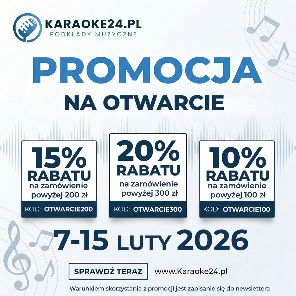 We’re excited to invite you to join our store opening promotion! It’s the perfect opportunity to start your karaoke adventure with professional backing tracks from Karaoke24.pl.